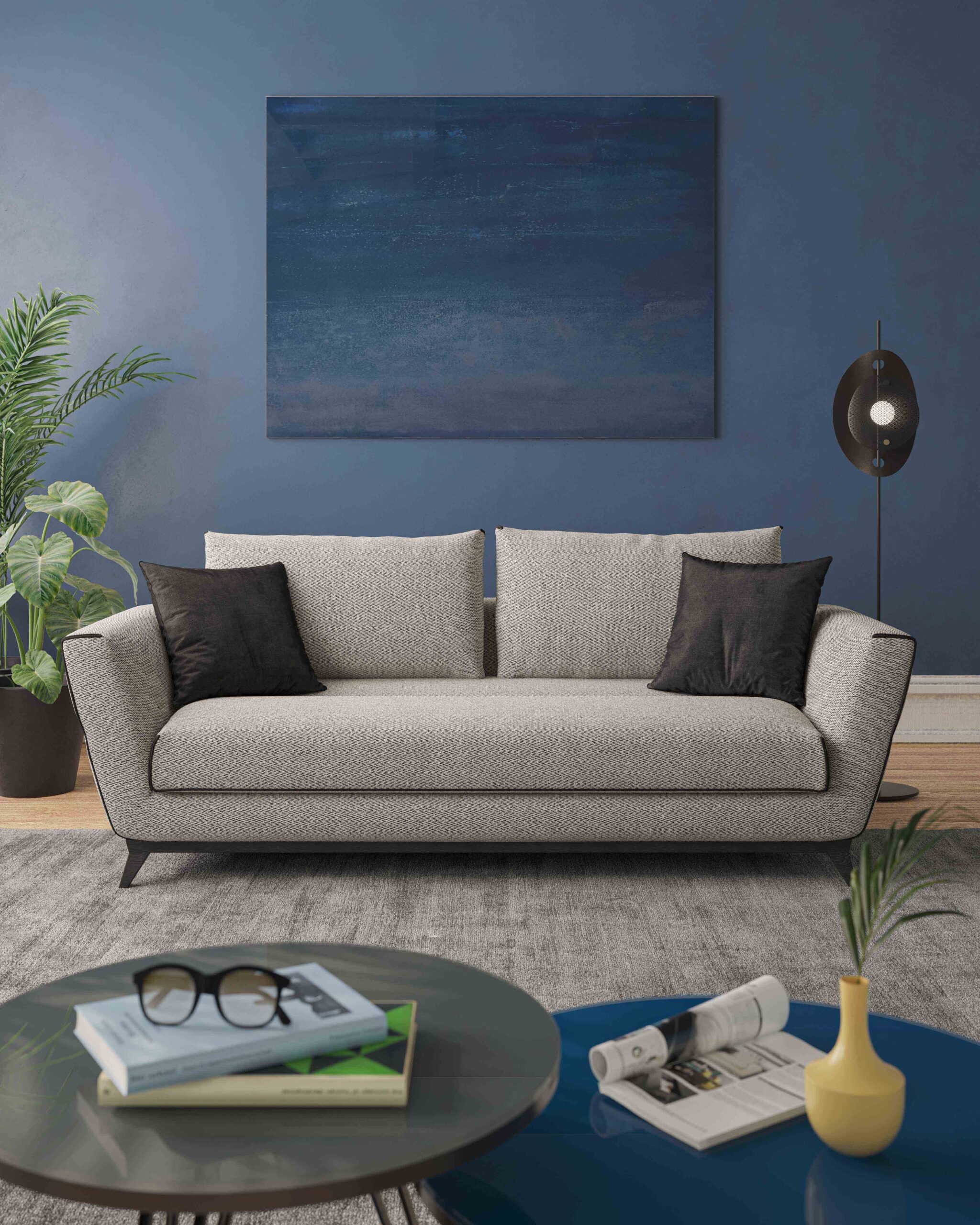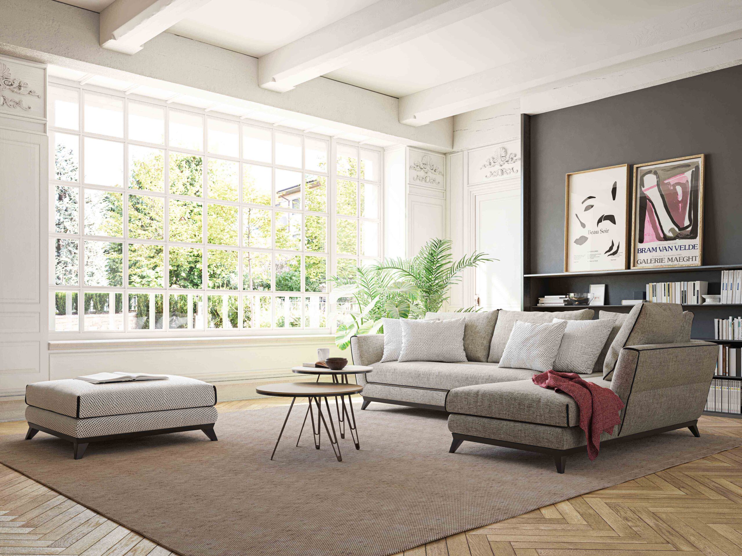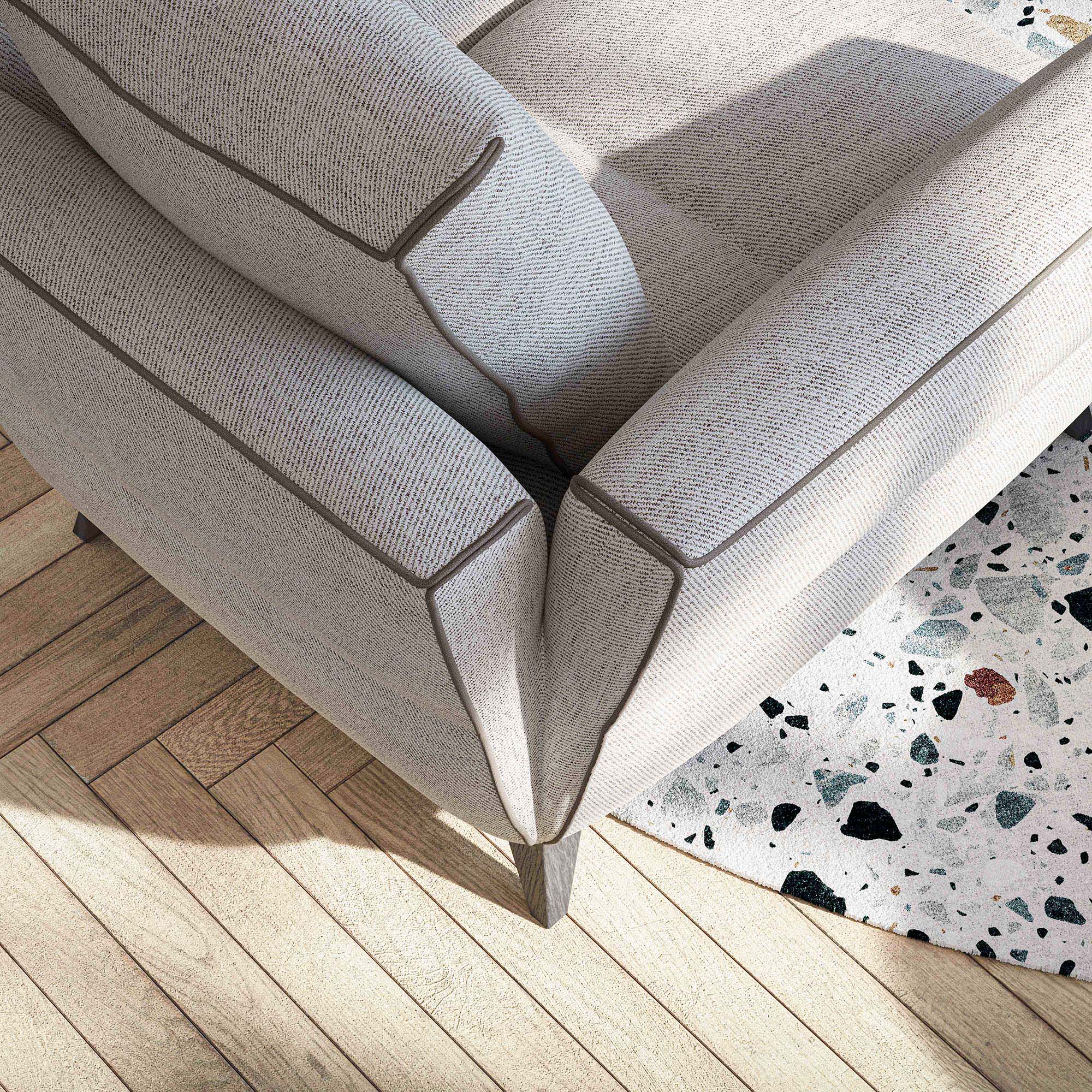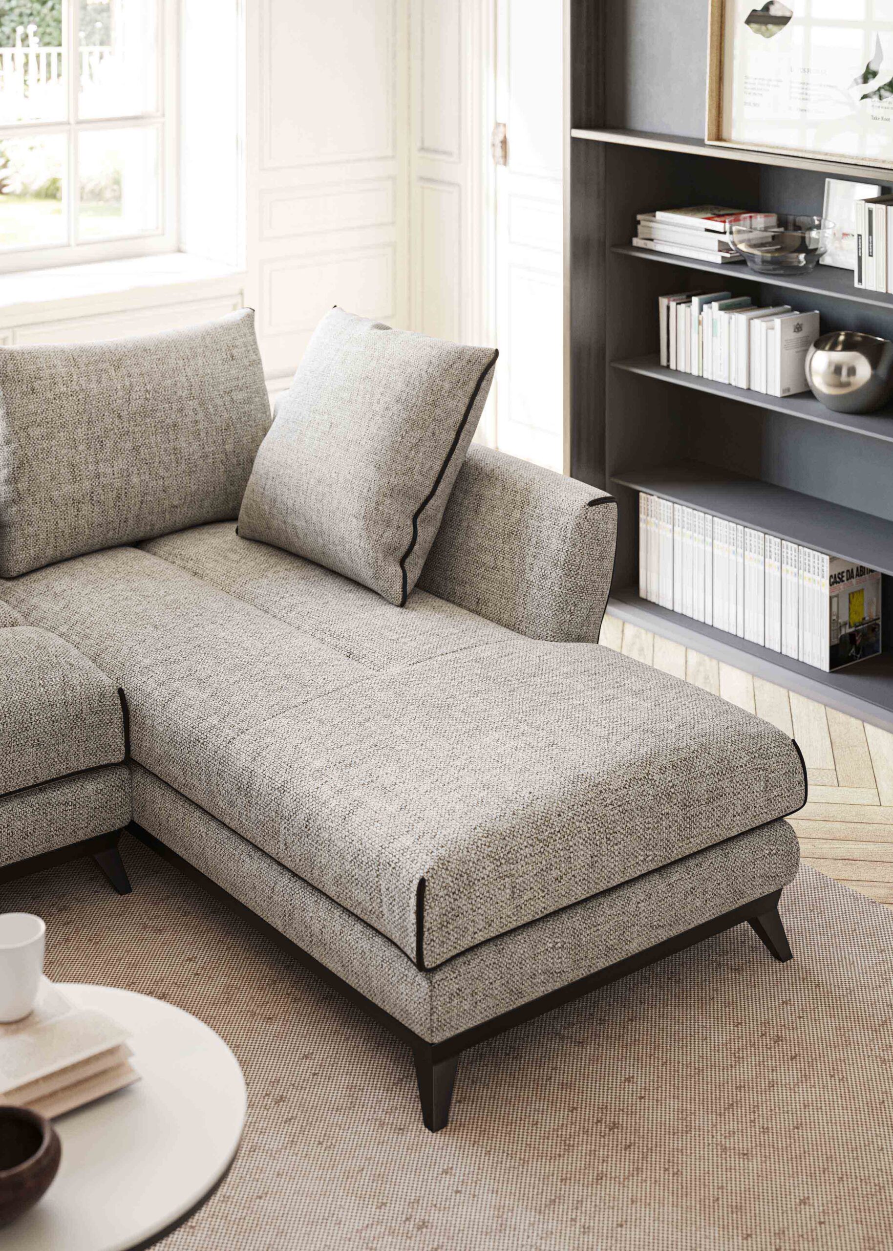 The minimalist mood of the Perfect Dream sofa is enriched by the use of refined materials. Each component of the sofa is crafted with attention to detail, using high-quality fabrics that offer a feeling of softness and comfort. The tailored details, such as the precise stitching and contrasting piping, highlight the brand’s attention to craftsmanship and quality, making each piece unique and precious.