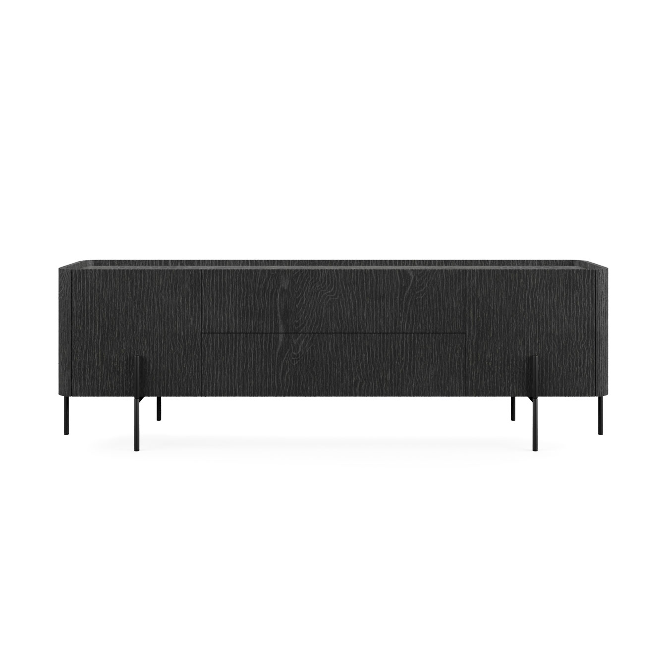 Le ante della Madia Pillier presentano una raffinata lavorazione 3D cannettata, che enfatizza ulteriormente la verticalità del mobile, ricordando i rilievi dei pilastri tettonici. Le finiture disponibili sono in noce canaletto e frassino carbone, due varianti che donano al mobile un aspetto elegante e contemporaneo. Il top e il fondo, invece, sono laccati e sagomati sui bordi, completando il design con una nota di raffinatezza.